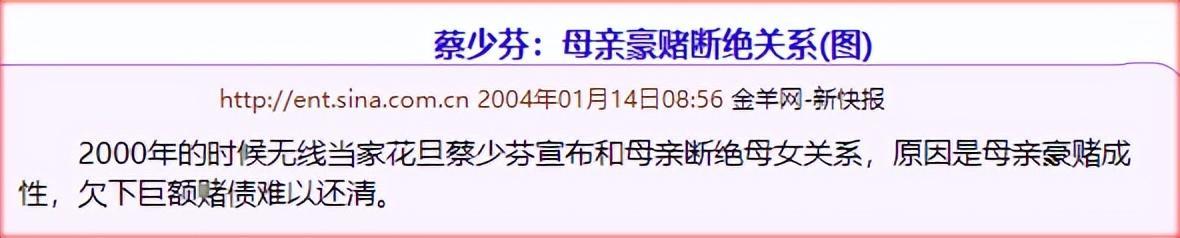 但即便这样的恐怖高收入,蔡少芬依旧时常捉襟见肘,倒不是她生活太奢侈,而是因为她有一个酷爱赌博、而且十赌九输的“无底洞”母亲。