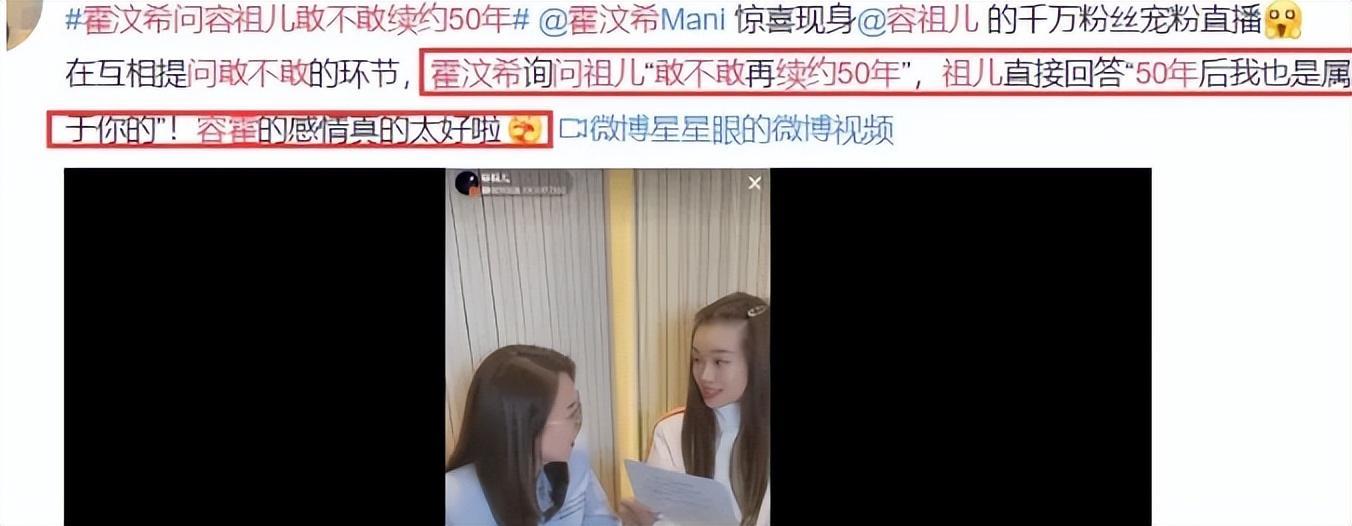 多种场合互相撒娇抚摸脸颊,如果我们不知道双方都有同性基础的情况下,会认为是很正常的闺蜜行为,但当得知之后,怎么看都像是热恋中的小情侣。之前在直播间中说道:50年后也是属于霍汶希的。