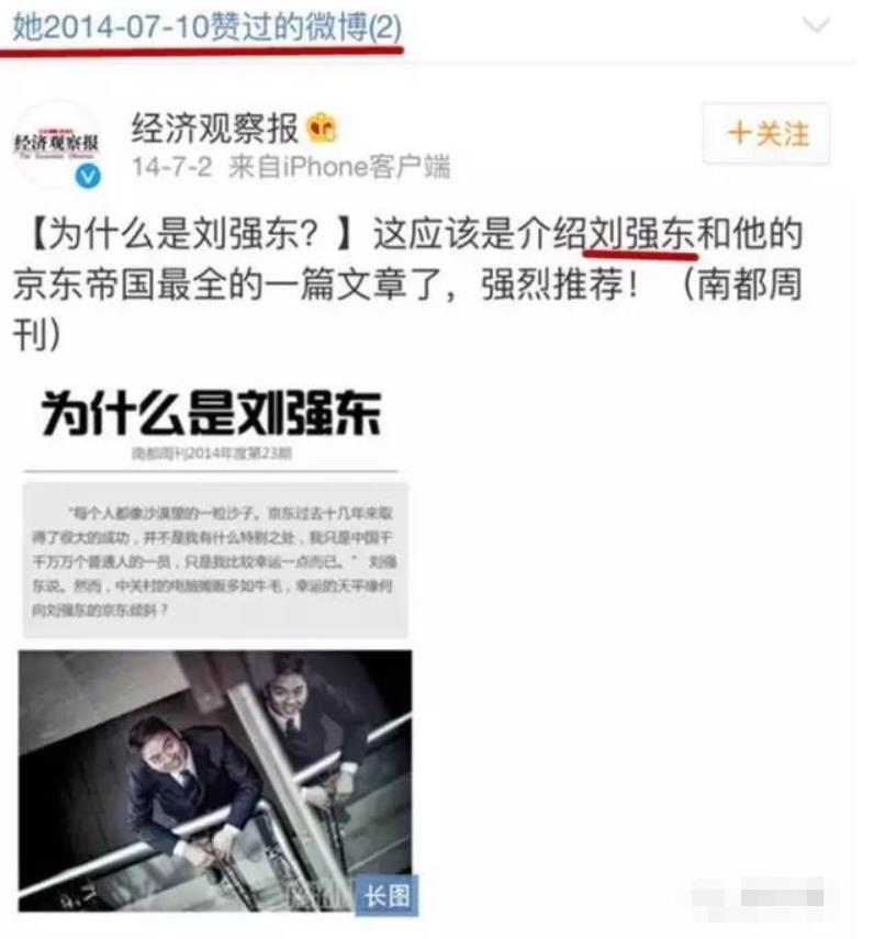 还会夸自己美,还会给老公刘强东点点赞。