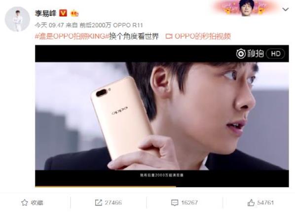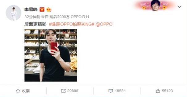 视频里,李易峰手持OPPO R11说,“用双摄拍大片,人像虚化,我就是焦点”