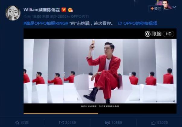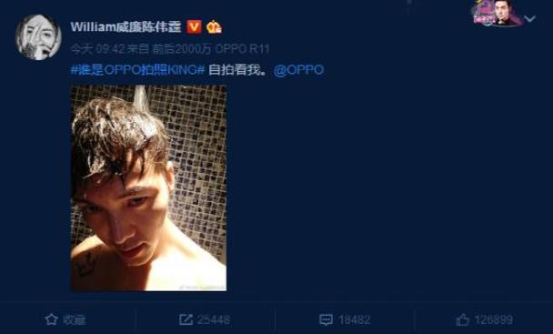 最早先是7月4号陈伟霆发了一条,“谁是OPPO拍照KING,自拍看我”