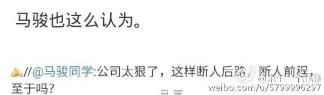 马俊导演也发微博说:公司太狠了,这样断人后路,断人前程,至于吗? 但是这条微博删除了还是被粉丝看到了