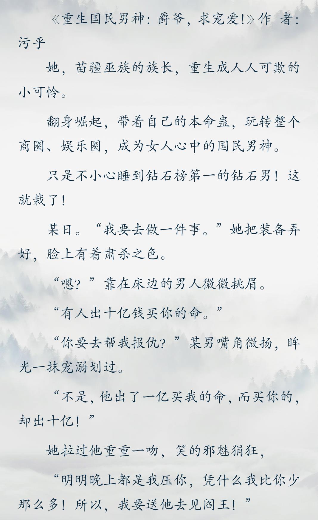 简评:同样是女扮男装的娱乐圈文,这本加入了蛊元素,女主是苗疆巫族族长,穿越到平行时空的凌钰身上。女主的本命帝王蛊汤圆随她一起穿越,汤圆真是太萌了,又软萌又傲娇,特异功能也很给力,希望它以后能进化,越来越萌。