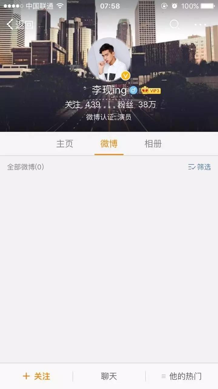 李现清空微博:是因李现曾在某饭局上,被某圈内知名Gay高层强撩,并暗示他晚上陪床!不同意才得罪了该公司知名Gay高层!被撤掉全部影视资源!这个高层疑似刘某,我只能说贵圈真乱..人家要真的不是Gay然后还要给扣帽子这就很恶心人了...心疼李现!不要退出娱乐圈呀[泪流满面]@李现ing