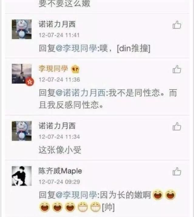 李现反感同性恋的文字并没有单独发微博发声抵制,