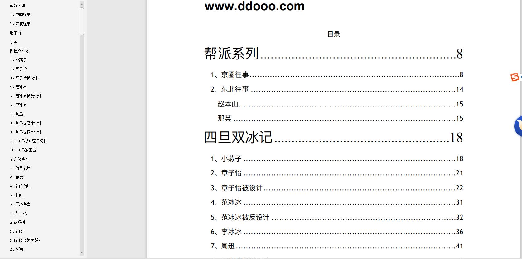 足足421页! 光目录就有7页之多……涵盖几乎我认识不认识的娱乐圈所有明星!不得不拜服作者的文笔或者说是想象力。