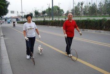早上遛狗的时候,带上铁环,整个人的精气神都不一样了!