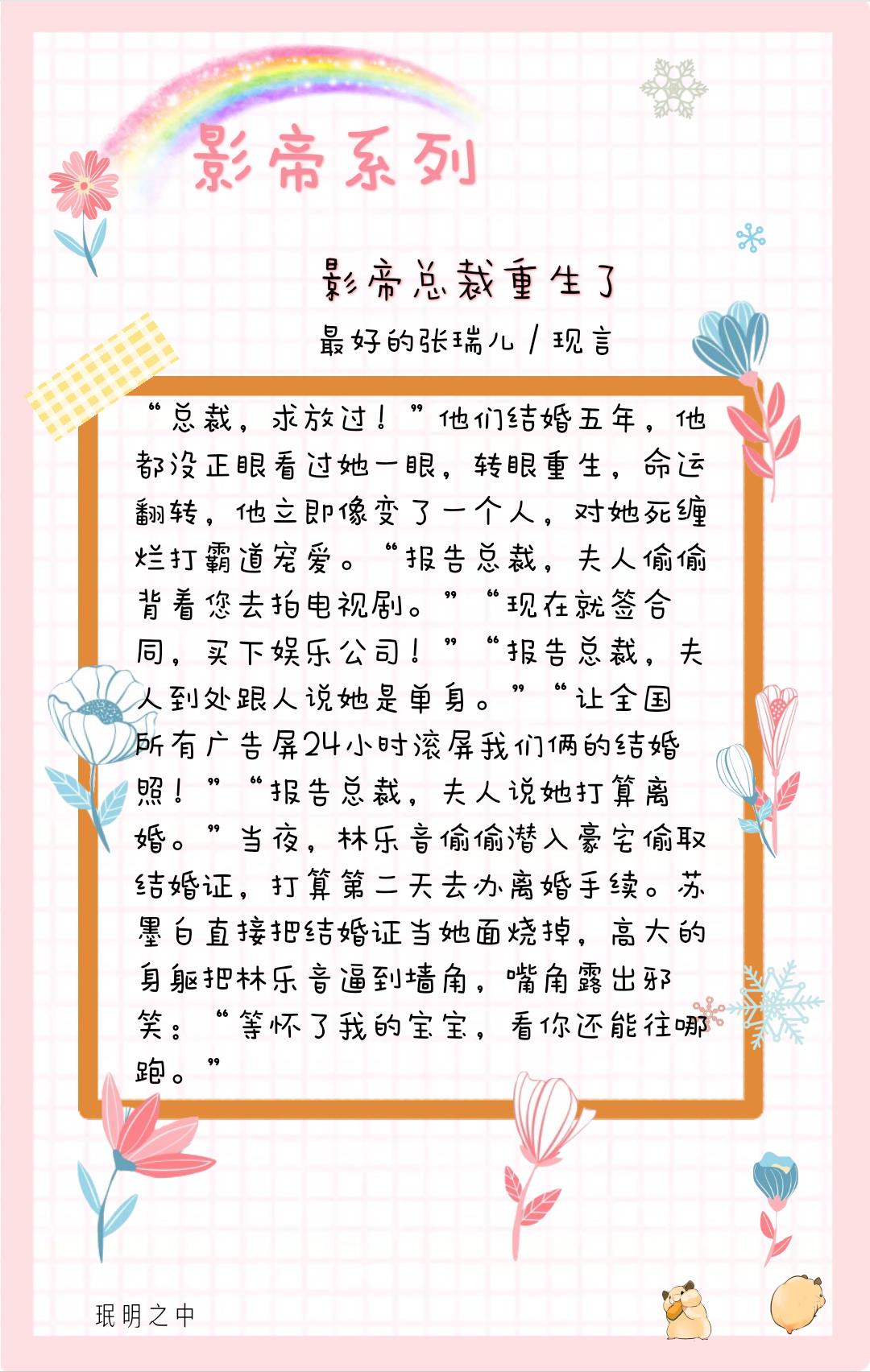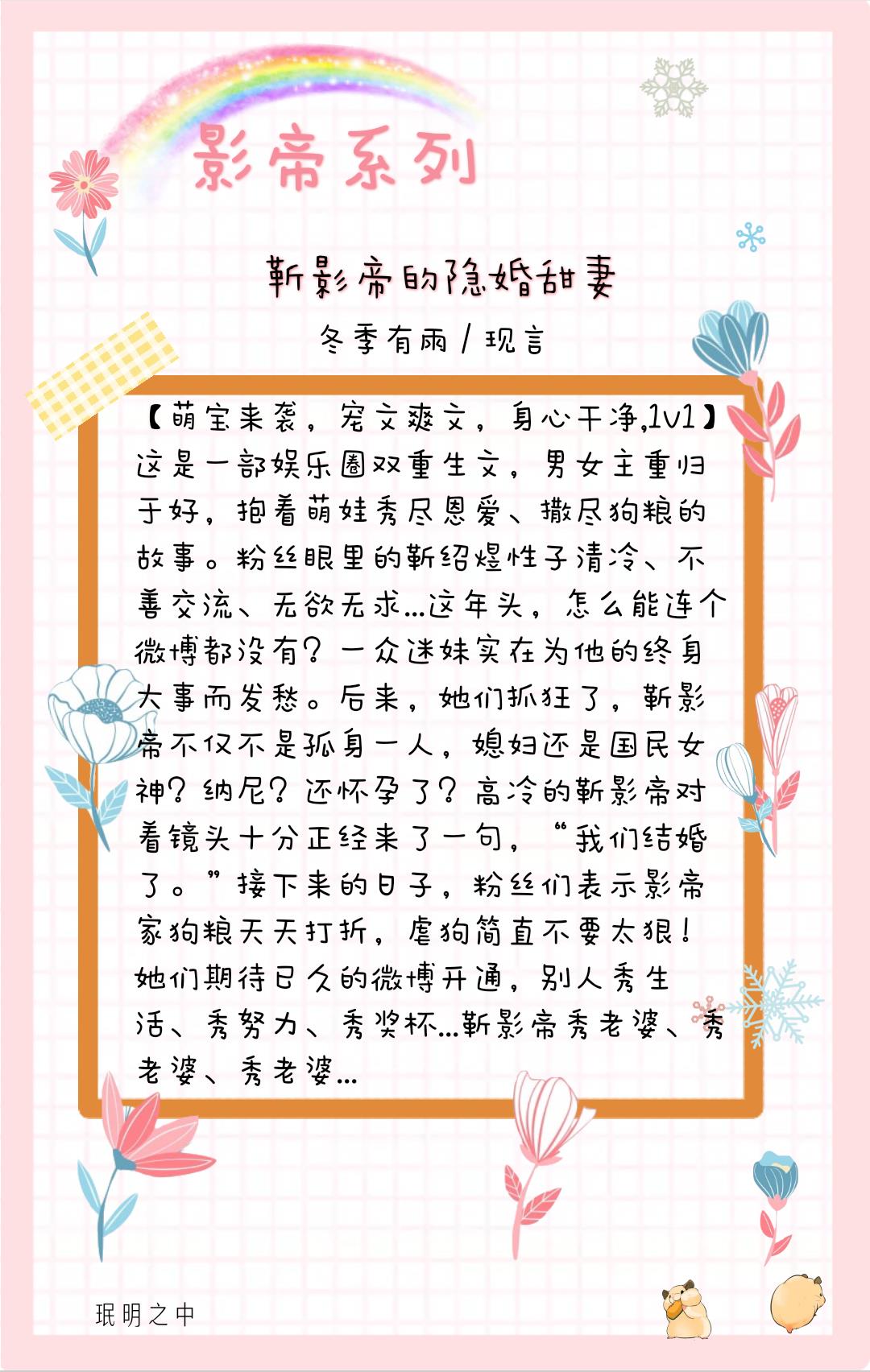 推荐理由:跟爱豆结婚,却刚结婚就无了踪影,一年后再见将自己宠上了天,影视圈的恋人最甜蜜的时候就是同拍一部剧,一起领一个通告,影帝和小渣渣的恋爱故事。甜文蜜宠不狗血!