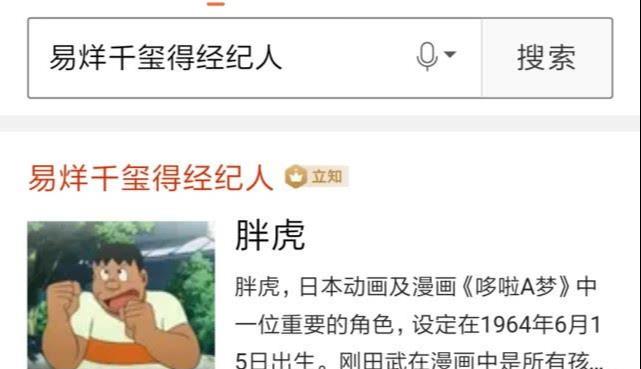 至于易烊千玺的经纪人为什么叫胖虎,可能是因为长相的原因吧,几乎和动漫里面的胖虎一模一样,而且在网上搜索“易烊千玺的经纪人”会出来胖虎的简介。其实他本人也非常喜欢这个称呼,这样憨厚老实的经纪人在娱乐圈中真的没有几个啊,甚至好多艺人都羡慕易烊千玺能够找到这么优秀的经纪人!