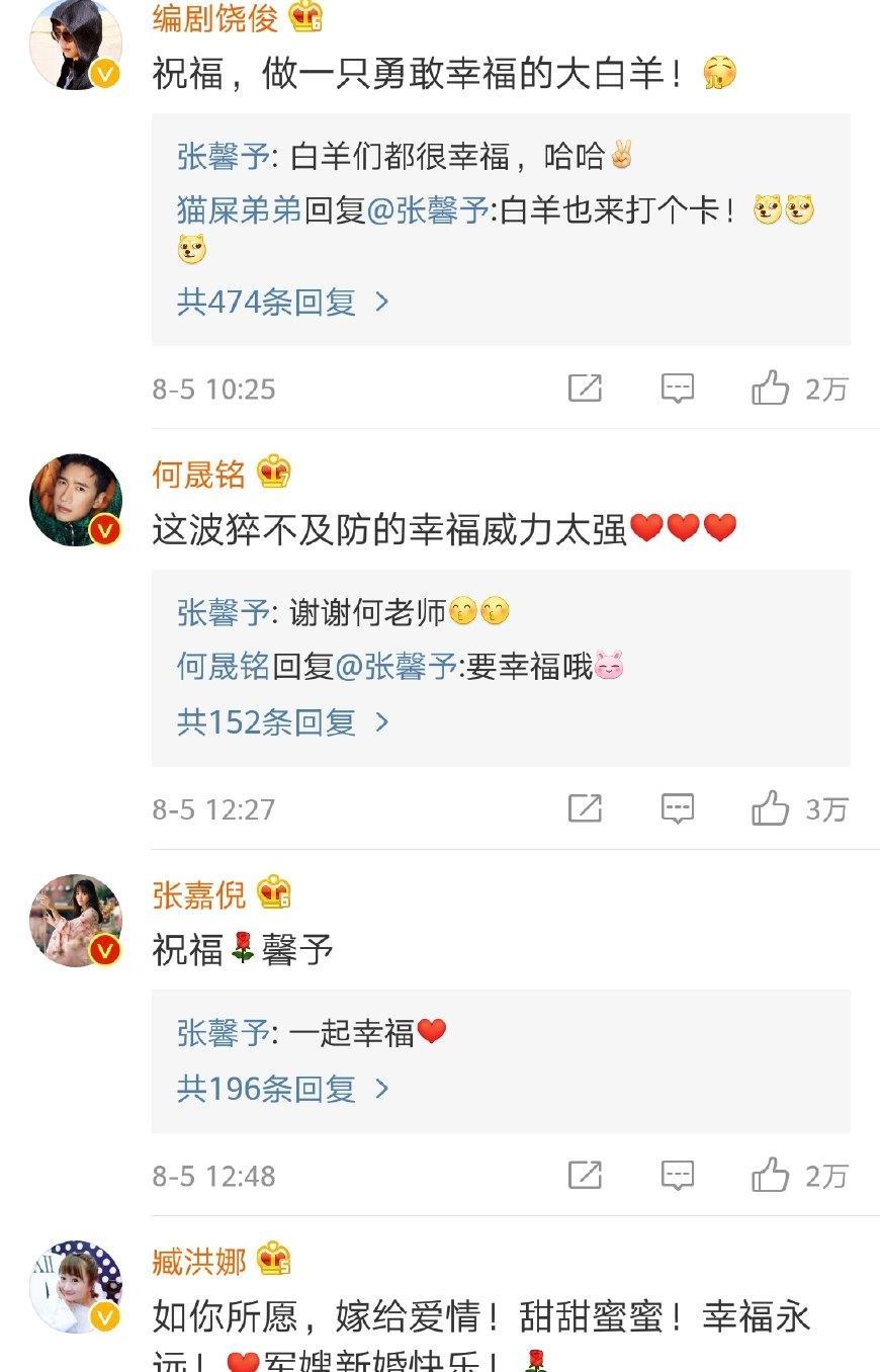 张馨予宣布结婚 半个娱乐圈明星纷纷祝福,何洁的话成亮点