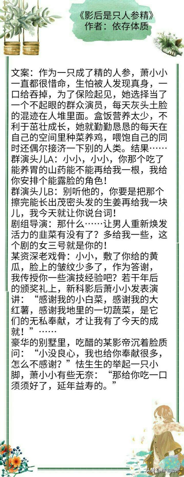 小财迷娱乐圈新人人参精✘禁欲影帝上古兽神,女主种种田,送送菜,就俘获了许多事业助攻还有影帝的爱情