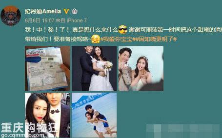 6月6日,歌手纪敏佳就在微博上宣布自己怀孕了。她兴奋地把自己的验孕棒给晒了出来,明晃晃两个大字:怀孕,还称自己“真是想什么来什么”。