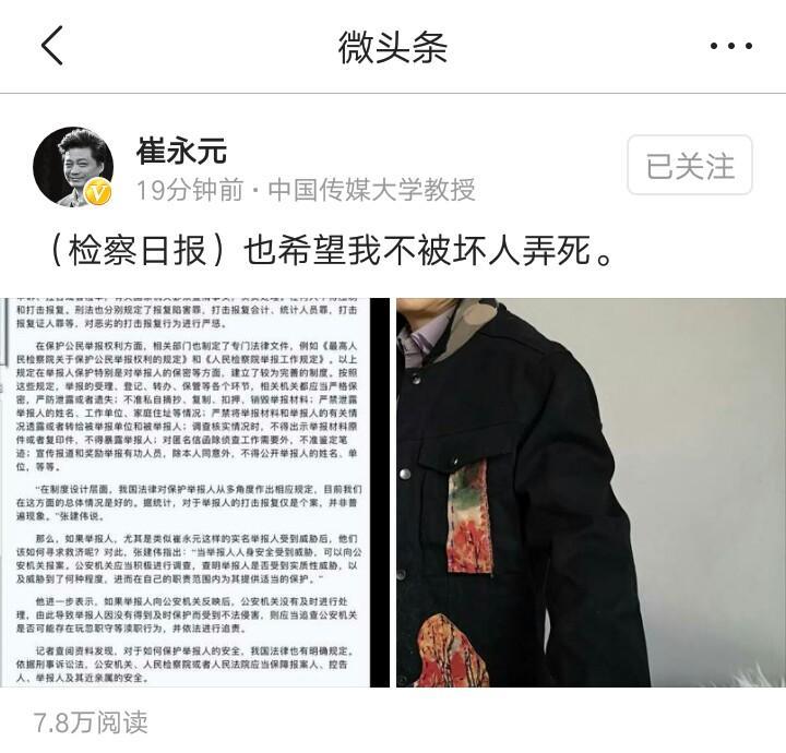 老崔这样敢于揭露事件的人,应该受到法律和国民的保护,不能再举报者心寒。