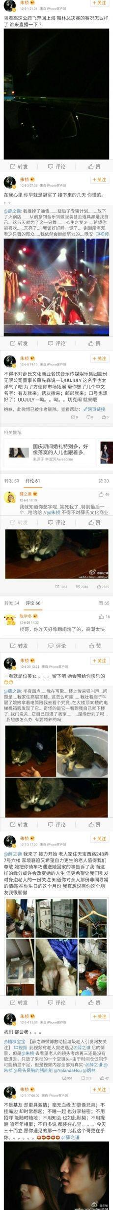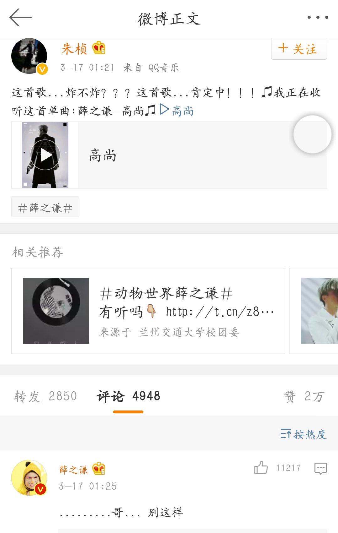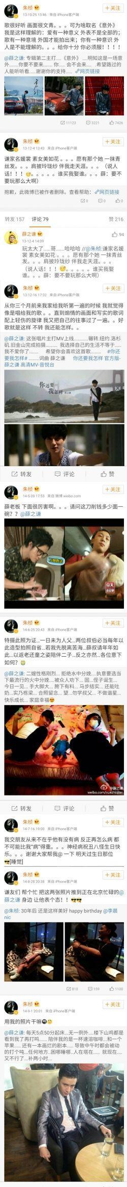 朱桢近日微博更新,为薛之谦新歌宣传