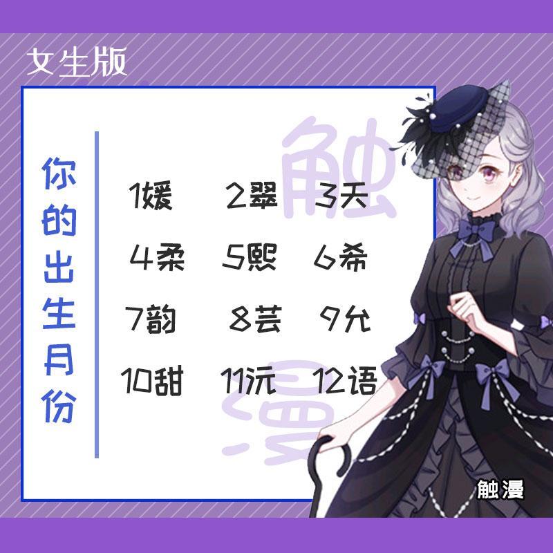 趣味测试,假设你成为娱乐圈新心,猜猜你会叫什么艺名,快快用你的出生月份测一测吧哈哈哈哈,名字超级苏哈哈。