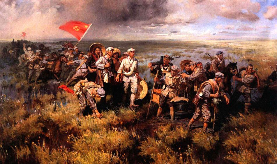 所有的战士抱定革命信念拼命的爬山。历经千辛万苦,久死一生,终于在1935年10月到达陕北。