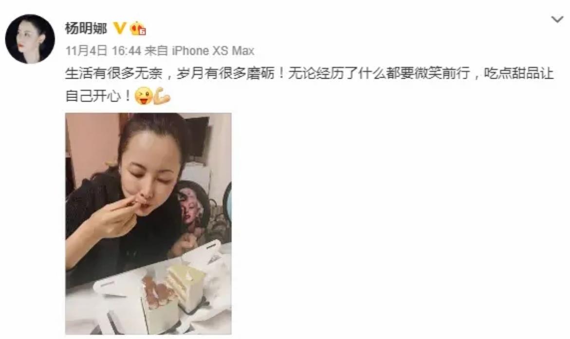 可没想到,杨明娜还是那么沉得住气,只发了一张自己津津有味吃蛋糕的照片,配文说:“无论经历什么都要微笑前行”。此时,距离田亮第一次爆料已经过去一年了。