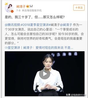 今年夏天,阚清子分手了。7月初,她上星空演讲就表明了一种态度:对于30岁的女人来说,爱情已不是最重要,最重要的对世界充满好奇和勇气。