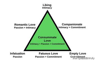 他认为,爱情是由三个部分组成:激情、亲密和承诺。