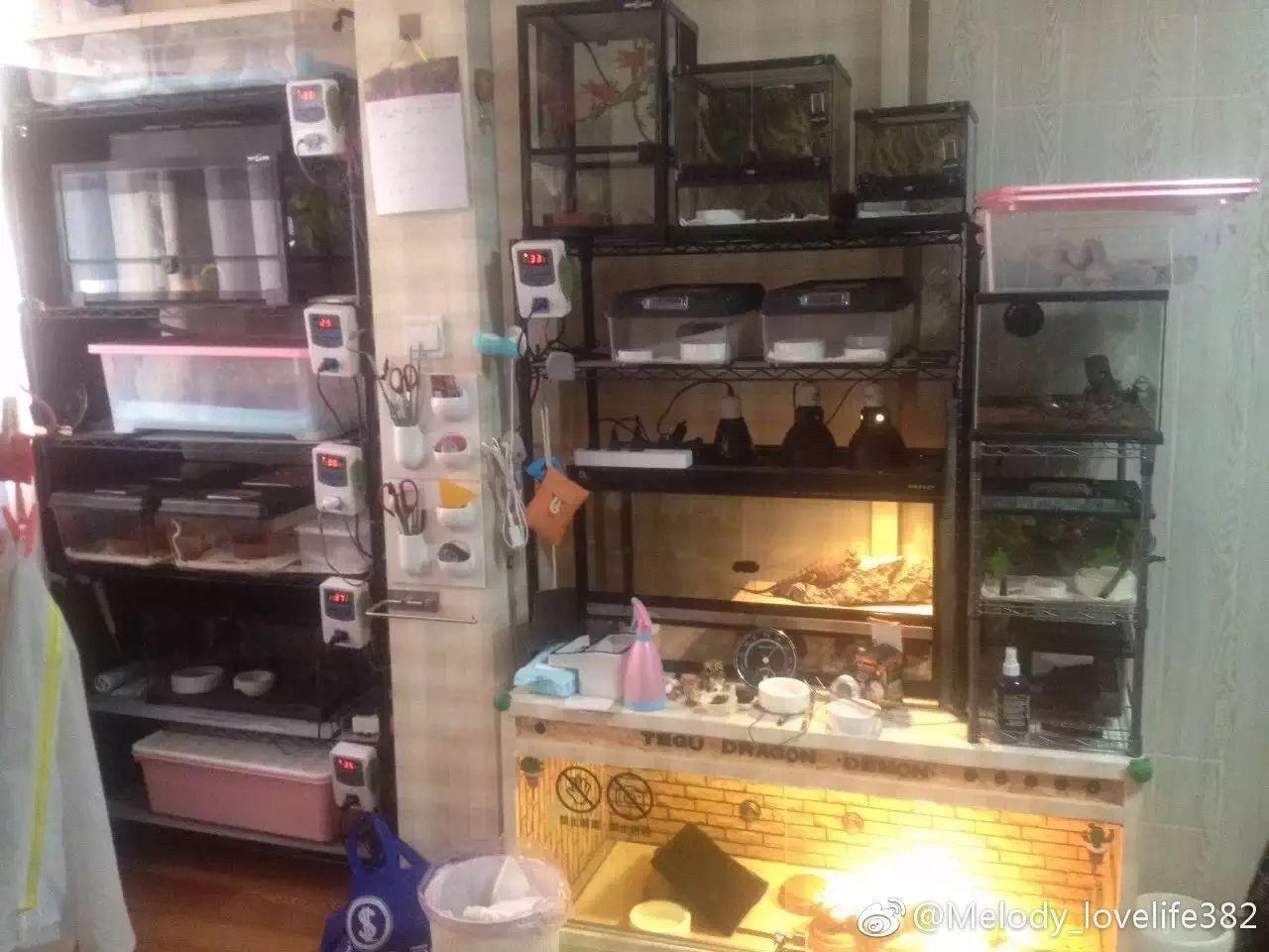 记者报道说,在嫌疑犯朱晓东和死者杨俪萍仅32平米的单式户家里,朱晓东在打通的阳台上布置了10几个抽屉式玻璃合罩,用来养球蟒、竹叶青、鬃狮蜥、蜘蛛等冷血动物。