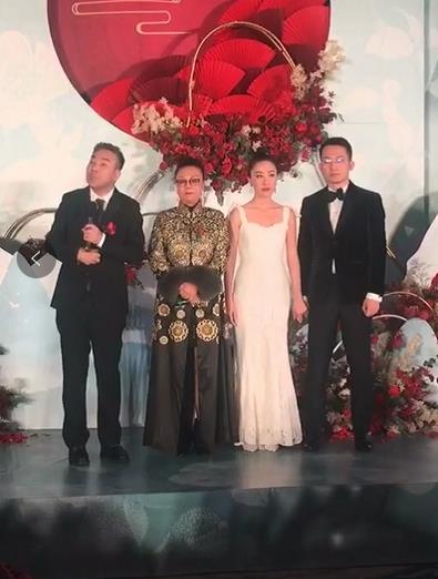 大家最先注意到的,是近年来鲜少在公众场合露面的老艺术家杨少华,宝贝孙女结婚,老人家自然是开心得不得了,他胸口别着一枝标示新人亲属身份的花,看着一对新人笑到合不拢嘴。