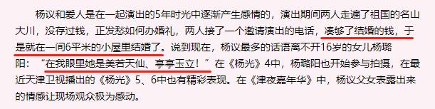 杨议对于这个女儿可谓是如珠如宝的珍视,在女儿十六岁时,曾被他带着一起上过节目。杨议三句话不离女儿,直言在自己心目中,女儿杨璐阳就是“美若天仙,亭亭玉立”,老父亲的骄傲与宠溺流露无遗。