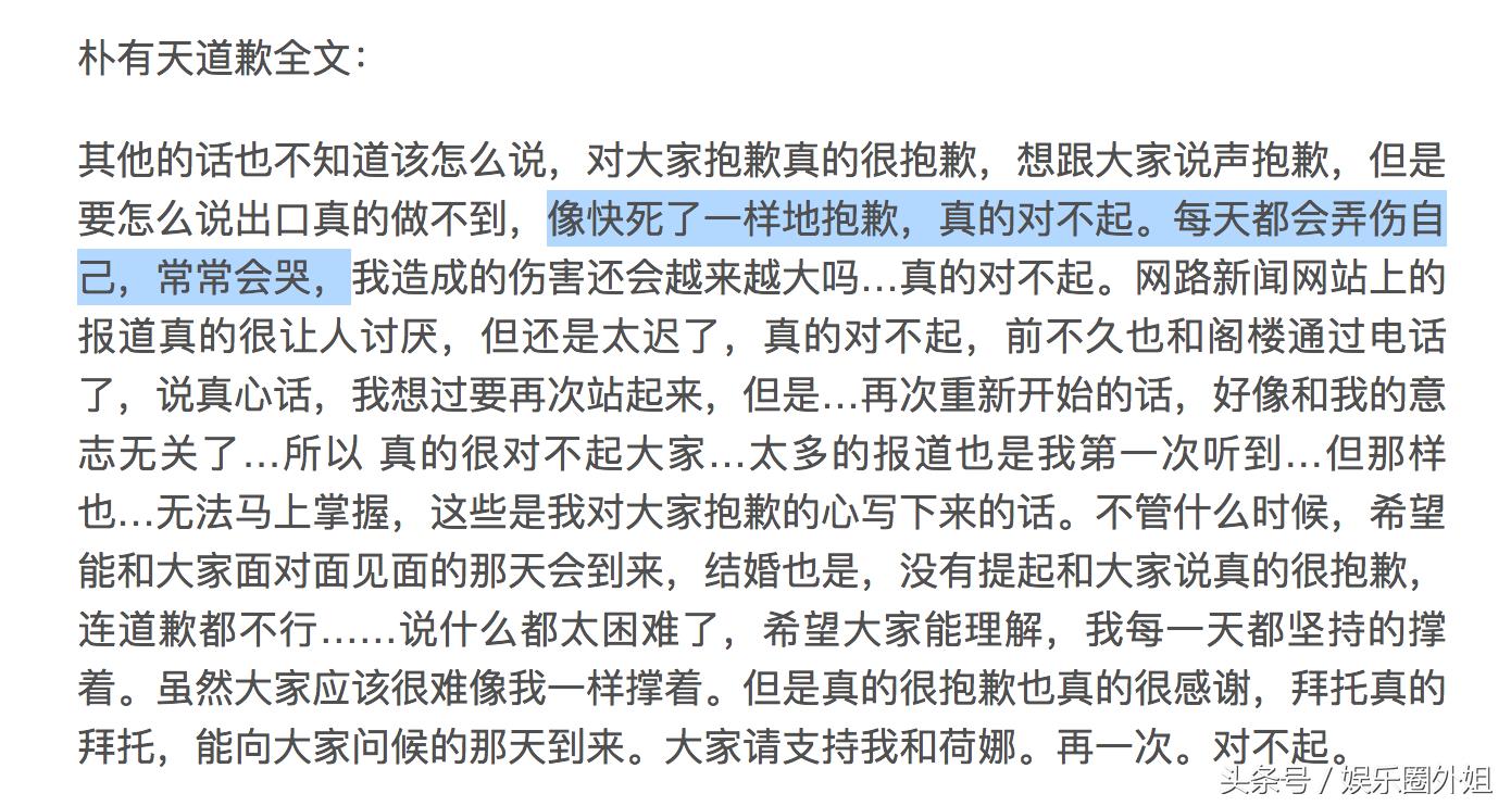 朴佑天的致歉声明中可是说自己整日难过得泪流满面啊……网民能原谅他们吗?