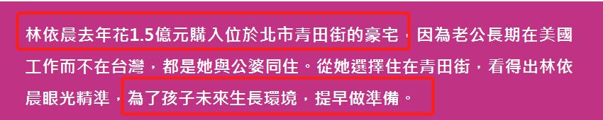 而为了备孕。,林依晨还一掷千金买下一处价值1.5亿台币的豪宅。