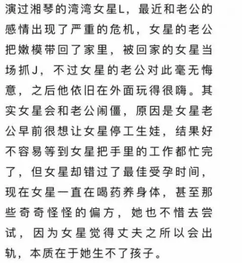 2020年4月,又有媒体发表文章,称某宝岛女艺人自从嫁给圈外老公之后多次求偏方受孕,但结果不尽人意,导致男方家里人不满,她自己身体也越来越差,甚至没有办法正常的拍戏,后来网友猜测该宝岛女艺人是演员林依晨。