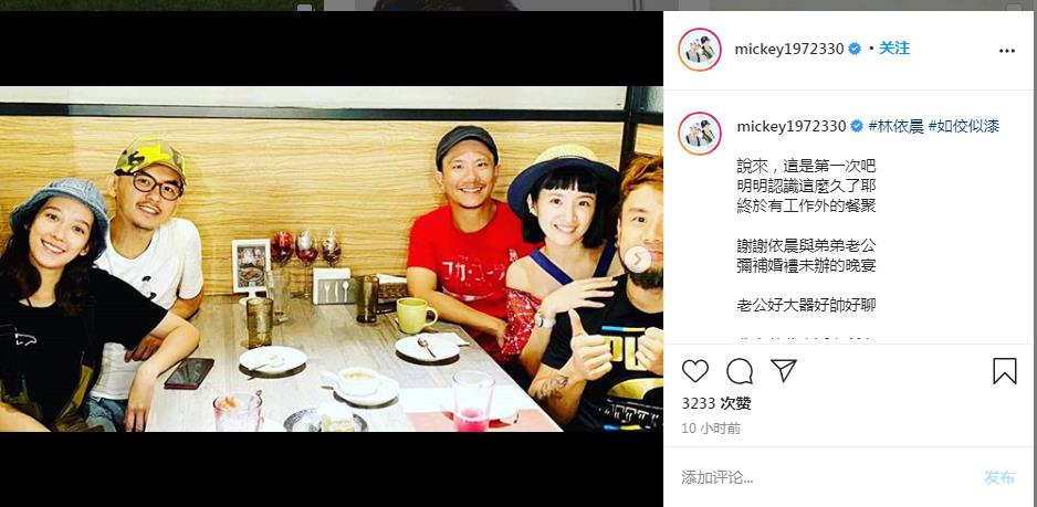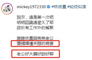 黄子佼还不忘在配文中强调:“老公好大器好帅好聊。”