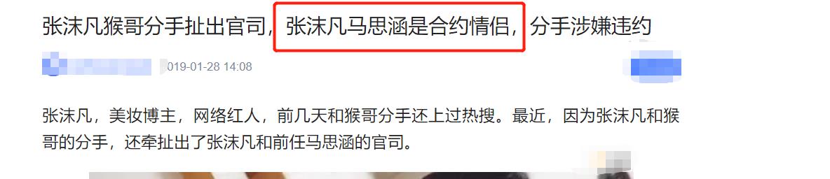 其实,在与孙梁交往之前,张沫凡还有和网红马思涵有一段感情,可惜的是这段感情后来被曝出是“合约感情”,张沫凡和马思涵实际上是合约情侣,后来两人因为利益冲突,马思涵以被限制人身自由,侵犯个人隐私为由提出了解约,让张沫凡陷入了官司纠纷,张沫凡也因此招来了“骗粉”的骂名,一时间名誉受损。