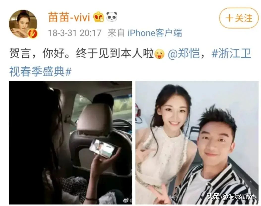 他们相识于浙江卫视的一次活动,初识时苗苗就像是一个小粉丝与郑恺进行互动。苗苗更是在微博晒出了两个人的合照,配文: