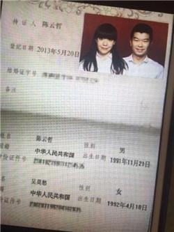 从曝光的结婚证上可以看到吴莫愁与其富二代丈夫的照片,吴莫愁是1992年出生,其丈夫则是1991年出生。但照片中,吴莫愁的刘海遮住了眉毛,而且领证时间与男方出生日期也引来网友连声质疑:“结婚证眉毛不用露出来吗?”、“2013年5月领的证,男的1991年11月出生,还没到22岁法定年龄呢”。