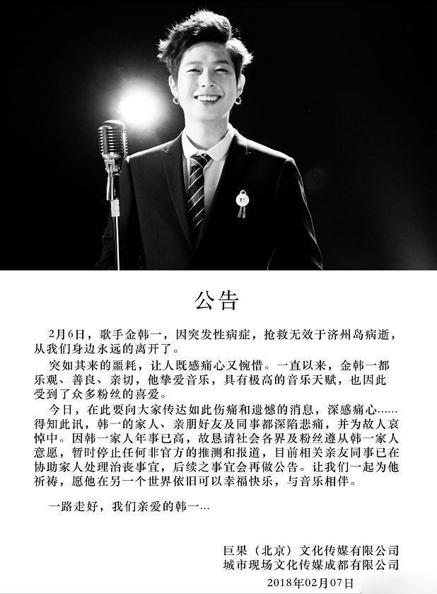 但是该来的还是来了,金韩一生前所在的经纪公司公司之后发布声明证实了金韩一已经去了另外一个世界。