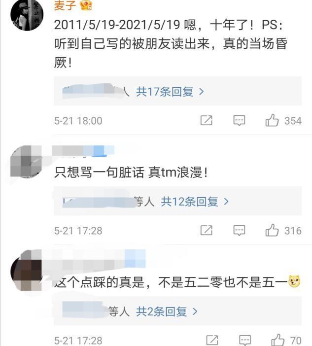 网友看到夫妻二人互相表白后纷纷表示“泪目”,有网友激动地感叹道:“只想骂一句脏话,太浪漫了!”,也有网友调侃两人发视频的时间点,表示:“不是五二零也不是五一。”