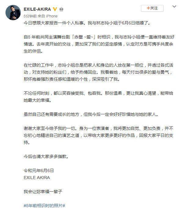 男方AKIRA也在自己的微博上