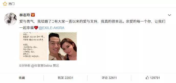刚刚!林志玲宣布结婚了