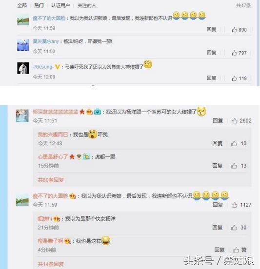 顺着热搜,点进去才发现,原来只是一次乌龙事件,结婚的并不是人气偶像杨洋,而是一名叫苏可的演员结婚,而他的妻子恰好也叫杨洋,而这个杨洋只是一个圈外人。