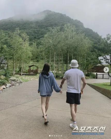 演员孙泰英上传了和丈夫权相佑亲密牵手散步的照片。