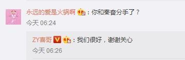男主角秦奋的绯闻女友网红喜哥21日也在微博上回复网友关心,称:“我们很好,谢谢关心”。