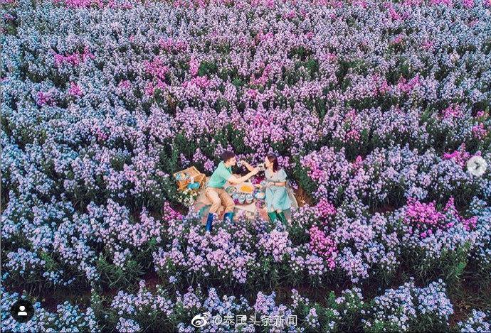 泰国头条新闻社讯 据泰媒报道,近日泰男星New Wongsakorn 与女友Now 一起到清迈新开的“I Love Flower Farm”游玩,并且两人都上传了在紫色花海中的照片,引发众多粉丝与网友点赞。从他们两人发的照片上看当时天气真的特别好,晴朗的天空下一片紫色花海。让人看了也想去游玩一番呢。(编译:知否,来源:Posttoday新闻网)