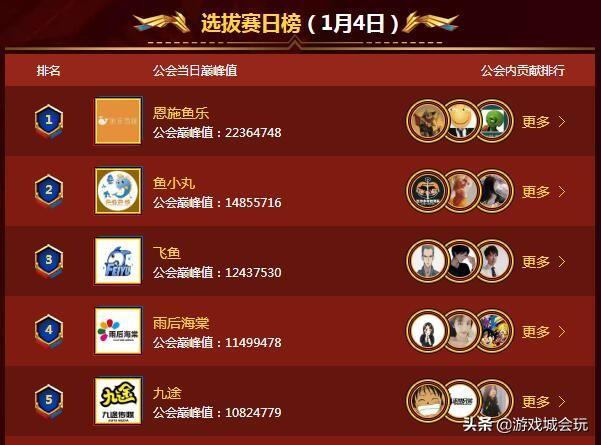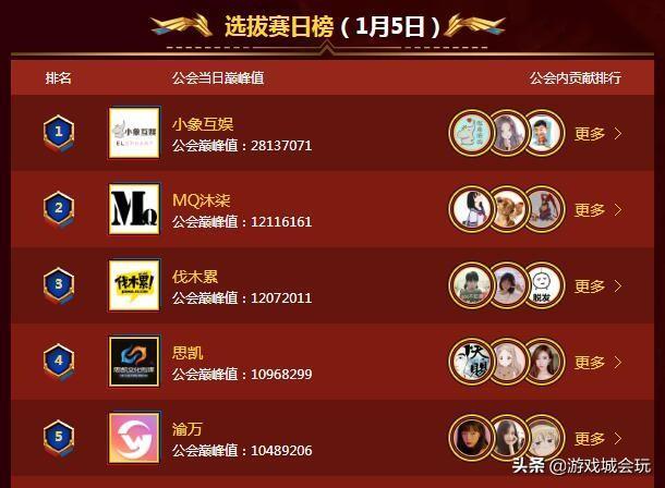 在这次巅峰公会战,因为有实力的大公会并没有尽全力打比赛,使得第一天爆出冷门,很多顶级公会没能晋级。在第二天的比赛要相对正常一些,晋级的五大公会都是目前斗鱼最致命的公会之一。当中包括PDD的小象公会,拥有王纪超等主播的MQ公会,拥有Doinb的伐木累,拥有姜允儿的思凯以及拥有小团团的渝万公会。不过因为各大公会竞争不大, 使得最终晋级的礼物榜也相对较低,基本只要打出百万元的礼物就能获得晋级资格。