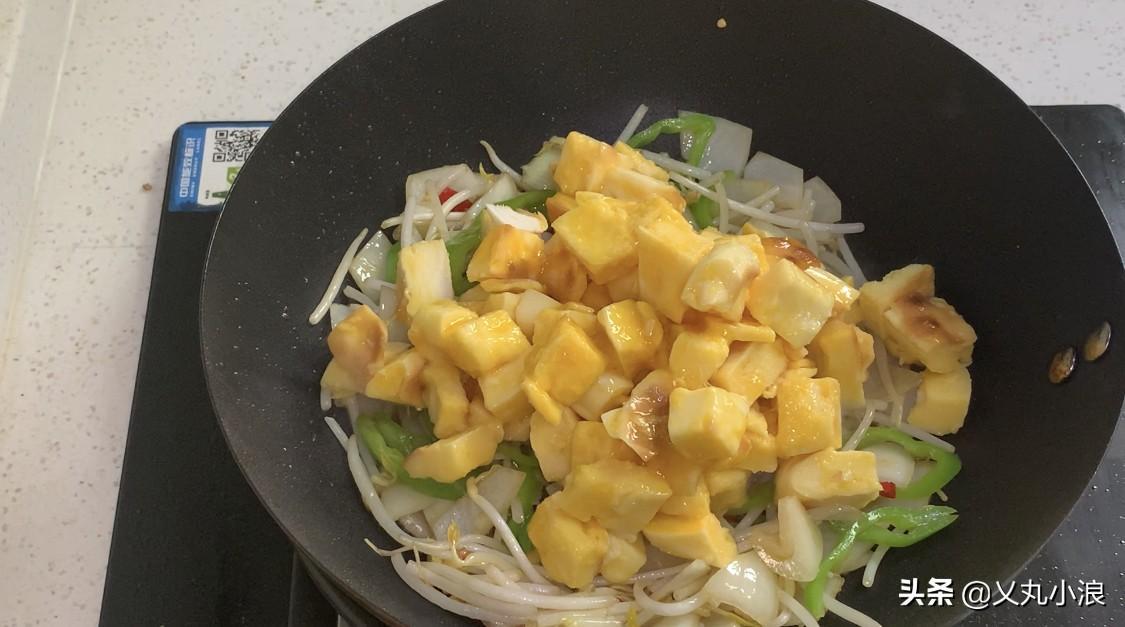 第七步:加入之前准备好的饼翻炒