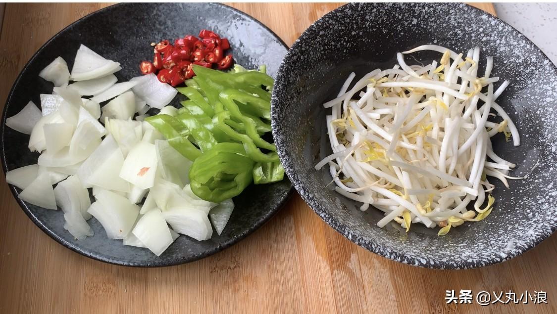 第五步:准备配菜,这里可根据自己喜好搭配,我这里准备了洋葱,青椒,豆芽,小米辣,蒜等