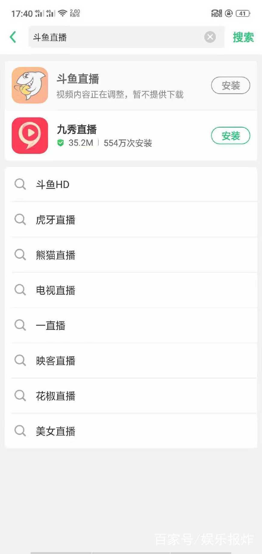 安卓手机搜索斗鱼直播,则出现“视频内容正在调整,暂不提供下载"字样。