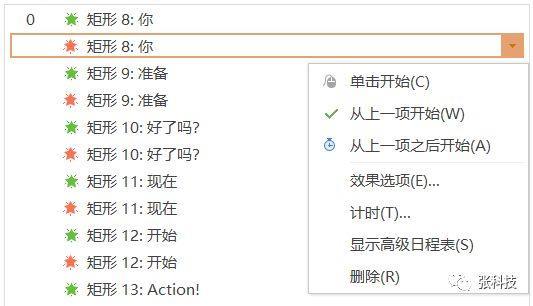 选择动画效果为“从上一项开始”;