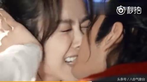 宋茜突然张大嘴,一下咬住了黄晓明的下嘴唇,看着都觉得咬的疼。
