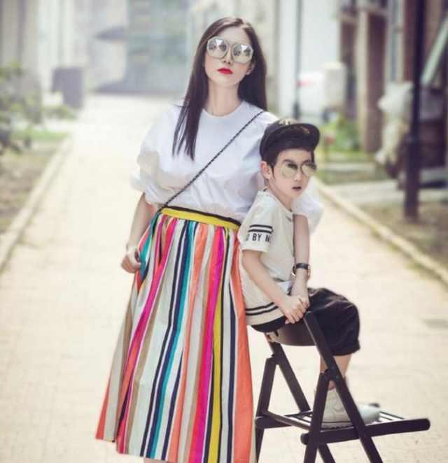 小包总和老婆看着很是般配,这颜值比同学唐嫣的颜值还要高呢,怪不得儿子的颜值这么高,就像是个时尚小达人一样,原来是底子好!