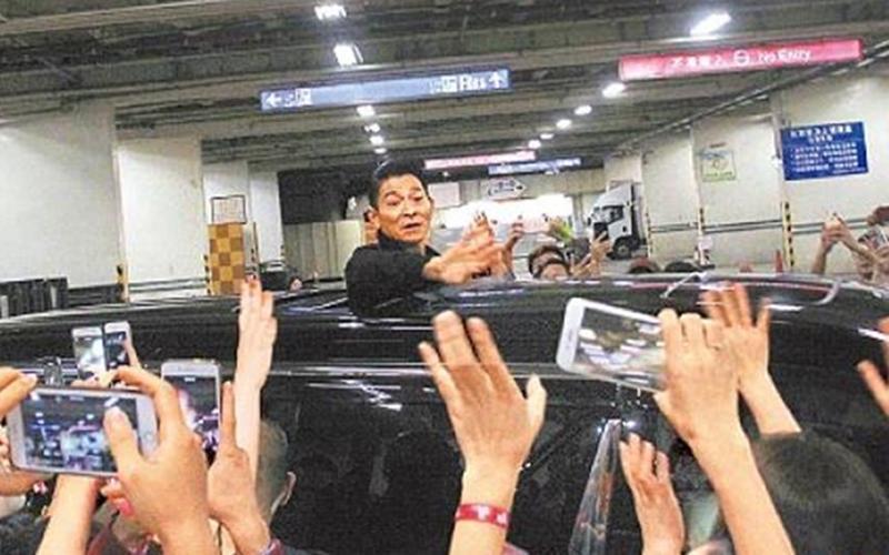 刘德华从座车天窗探出头指挥交通,并向粉丝道别。(互联网)