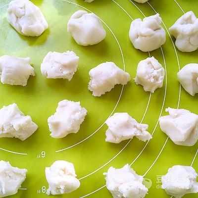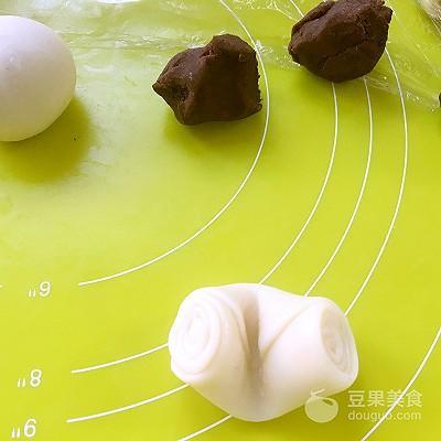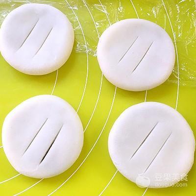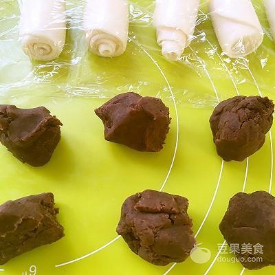 3、将两种面团分别分成10等份